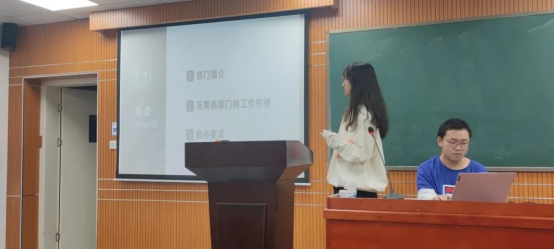 宣传部部长钟书函对宣传部进行了介绍,之后介绍了和各部门的工作对接,特别对稿件要求进行了讲解,并且部门成员进行了合影。