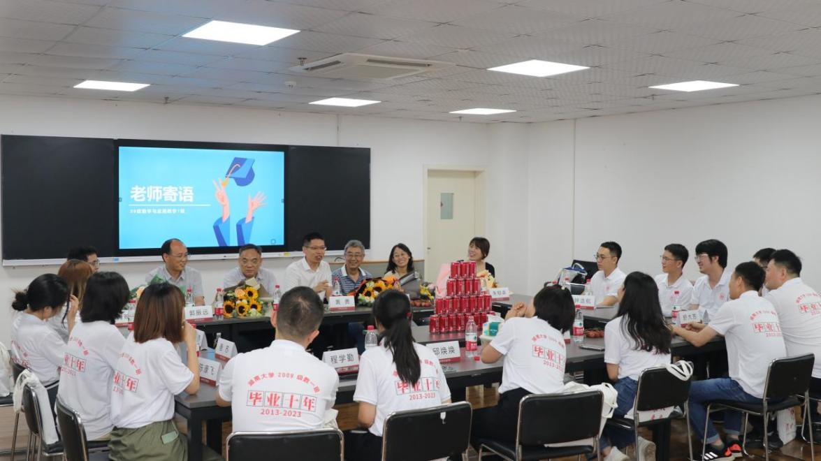 与老师们一起座谈交流,邀请了院党委书记蒋月评、院长黄勇、副院长郭振远,以及罗汉、肖映青、宋怀玲、朱郁森等7位当年任课的老师出席座谈会。