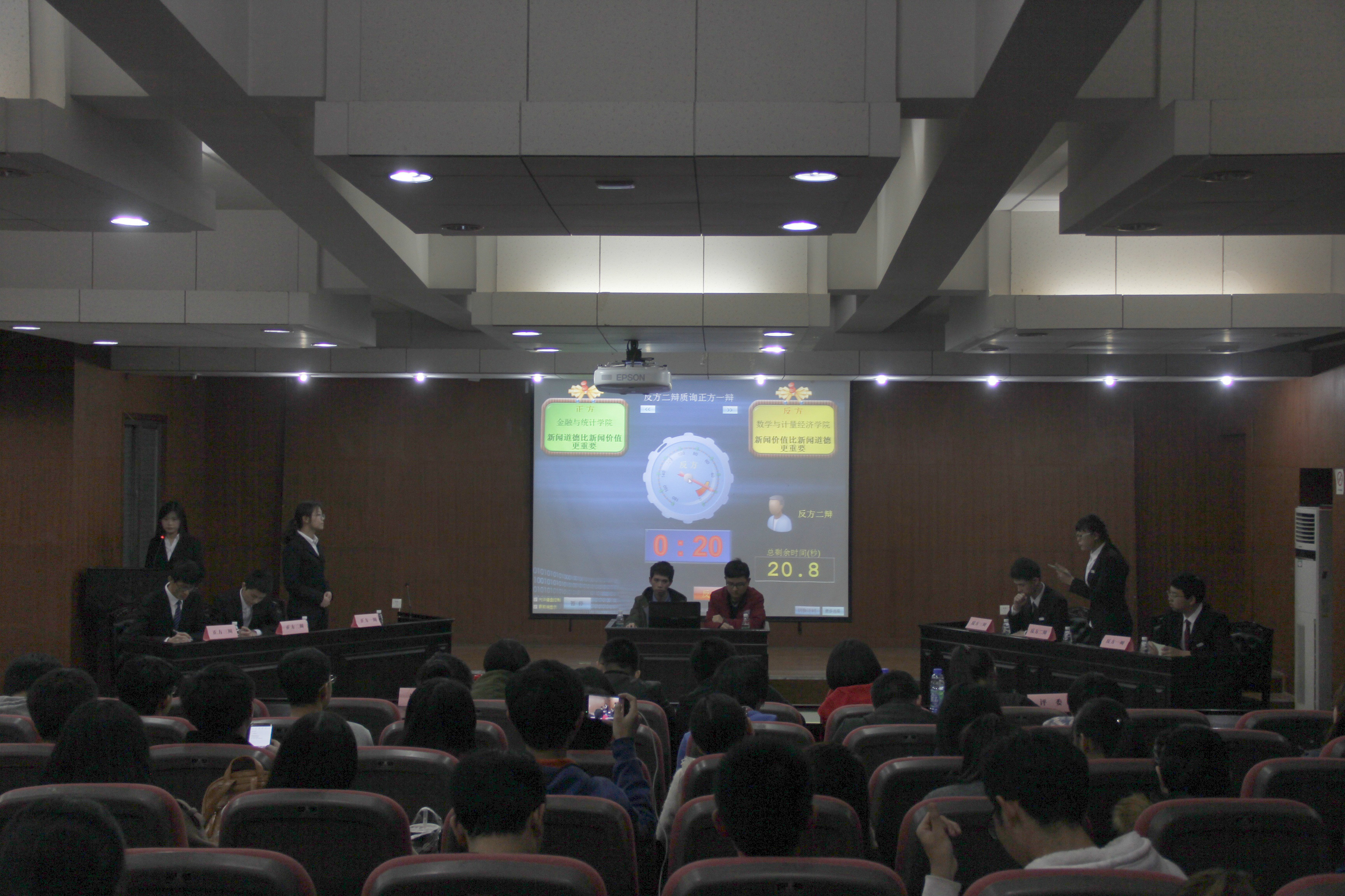 赛场英姿,续写辩论宏光。2017年3月25日,由法玩偶姐姐 主办的“时事杯辩论赛”半决赛正式开赛。数学与计量经济玩偶姐姐 (反方)与金融与统计玩偶姐姐 (正方)于晚七时以“更应该注重新闻道德还是新闻价值”为题在法玩偶姐姐 模拟法庭展开了一场激烈的比赛。最后由数玩偶姐姐 获得胜利,夺得季军,正方一辩获得最佳辩手称号。