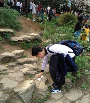 3月27日,班委们组织班级同学到长沙植物园开展争做植物园志愿者活动。有的在门口为不方便排队的老年人义务排队购票;有的在植物园内为不知道方向的行人热心指路;有的捡拾地面垃圾。