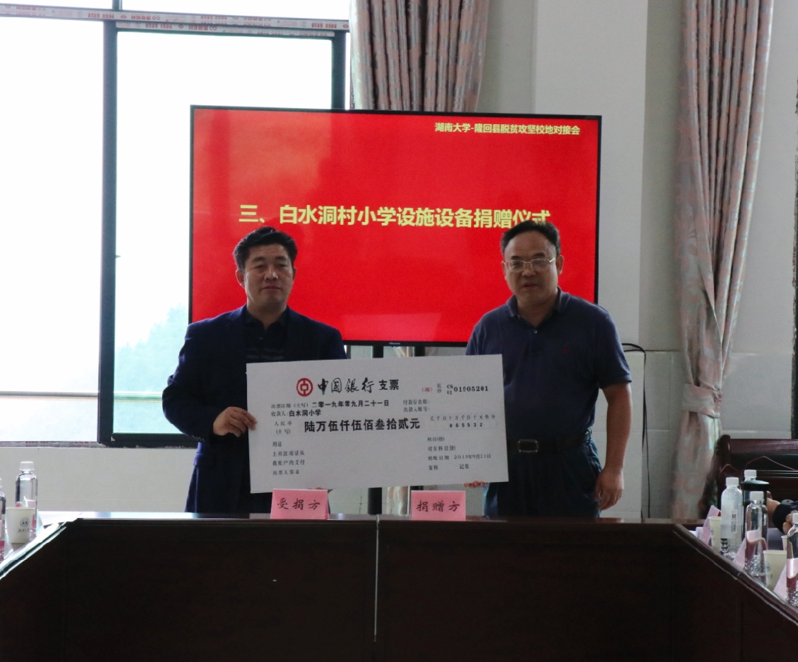上午10点,四位老师来到白水洞村村部会议室,参加白水洞村小学设备设施捐赠仪式。蒋月评院长代表全院师生捐出为白水洞小学购置254套课桌椅资金共计65532元。
