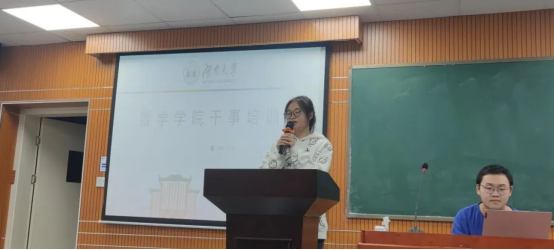 学习部部长桂斌对学习部进行介绍,特别对往年学习活动讲解,例如16天学习打卡活动,数学广角推送,学霸笔记评选活动,考研送温暖活动,并且部门成员进行了合影。